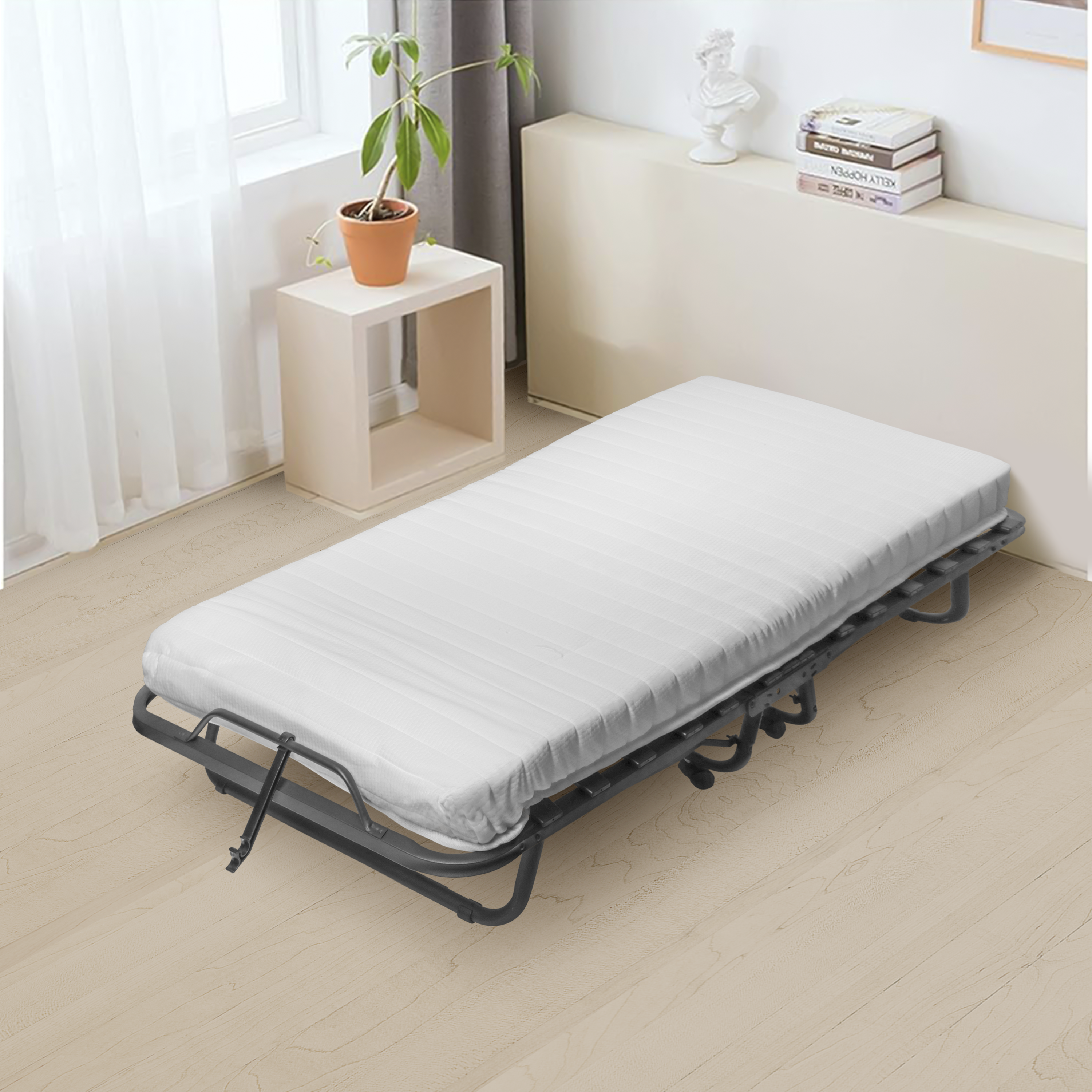 Ce lit pliant est équipé d'un matelas confortable en mousse froide d'environ 12 cm d'épaisseur. La mousse froide est réputée pour son excellente ventilation et son excellent soutien, parfaits pour une bonne nuit de sommeil. Disponible en 90 x 200 cm ou en extra-long 90 x 210 cm, il y a toujours une taille adaptée à votre espace et à votre taille.