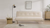 Deze slaapbank is een echte eyecatcher met zijn lichte, beige bekleding en moderne uitstraling. De subtiele knoopdetails in de rugleuning en de schuine pootjes geven hem een frisse, Scandinavische look. Omdat hij geen armleuningen heeft, oogt hij ruimtelijk en past hij perfect in zowel kleine studio's als grotere woonkamers.